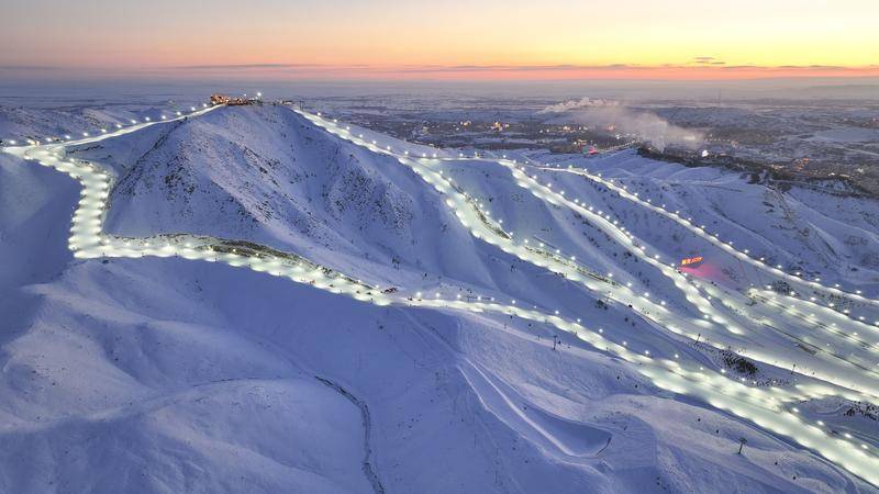 黄昏时分的将军山国际滑雪度假区(2025年1月24日摄)。将军山国际滑雪度假区在夜间开放多条雪道,以满足“雪友”多样化需求。