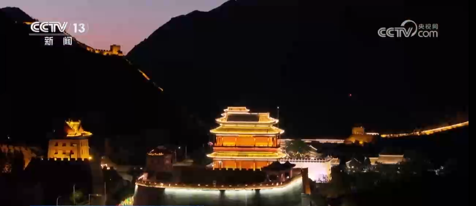 而在居庸关长城景区,已经提前开启了“夜游”模式。云台、城楼被依次点亮,夜幕下的居庸关长城宛如一条金色巨龙横亘于山脊之上,“天下第一雄关”的巍峨磅礴气势跃然眼前。