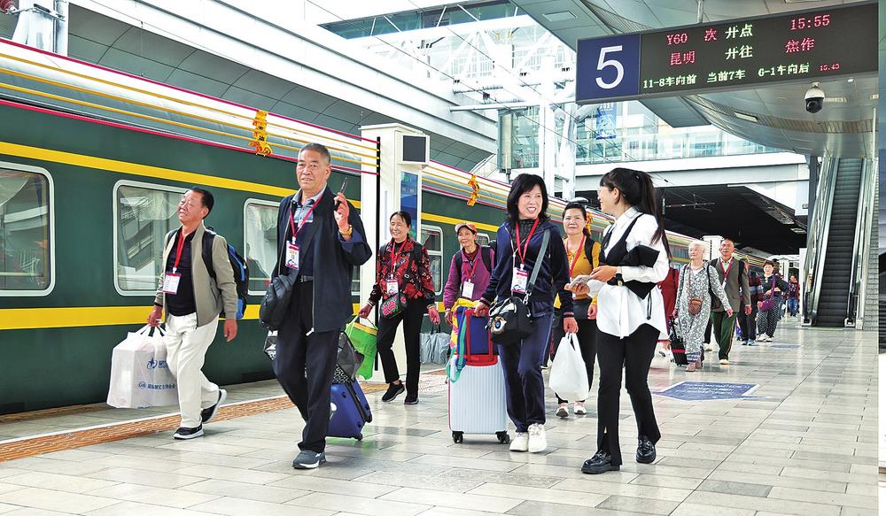 此外,铁路部门还开展“秋色旅游攻略”分享挑战赛,鼓励广大游客乘火车旅行。联合云南省内多家地方文旅部门和景区景点,推出“火车票+N”多元化套餐服务,游客凭到站火车票,可享受大理、丽江、香格里拉、西双版纳等近60家A级景区门票“免费或折扣”优惠。(春城晚报 记者孙江荭 文 杨天宏 许媛媛 摄影报道 通讯员谢一可 田瑜 )