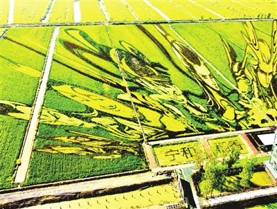 “今年,我们一口气设计了红色主题、文化主题、动漫主题等5幅风格各异的稻田画,这些稻田画规模不一,小到几十亩,大到近百亩,是大自然与庄稼人共同绘就的作品。”宁和稻香生态园负责人李长生说。