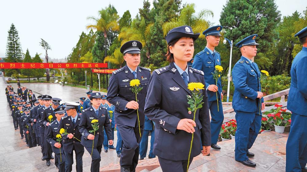 9月30日,2025年红河哈尼族彝族自治州暨蒙自市烈士纪念日公祭烈士活动在蒙自烈士陵园举行。图为敬献鲜花。本报通讯员 杨雯璿 摄