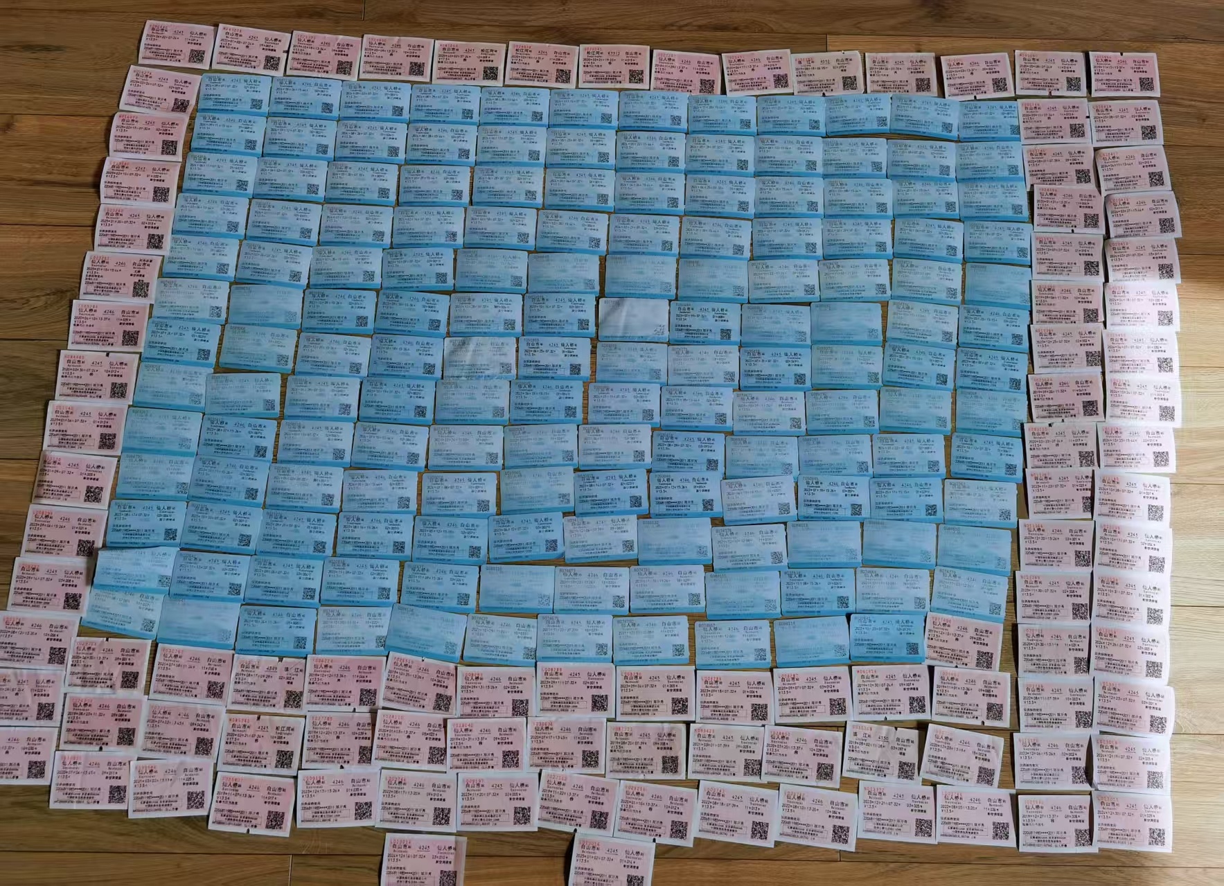图为笔者多年因求学、工作、远行探亲或旅游积攒的部分纸质火车票。四十载光阴里,因求学、工作、远行探亲或览胜,我曾数百次踏上火车旅程。但若论印象最深刻的一次,必是2025年9月28日,与四岁多的儿子橡果共赴的沈白高铁首日体验之旅——从吉林省白山市白山东站到江源东站,短短一程,不过十三分钟,却盛满了难忘的意义。