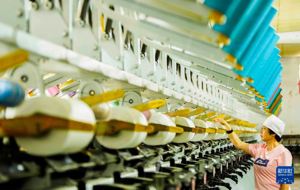 10月1日,工人在河北省遵化市高强化纤有限公司车间工作。