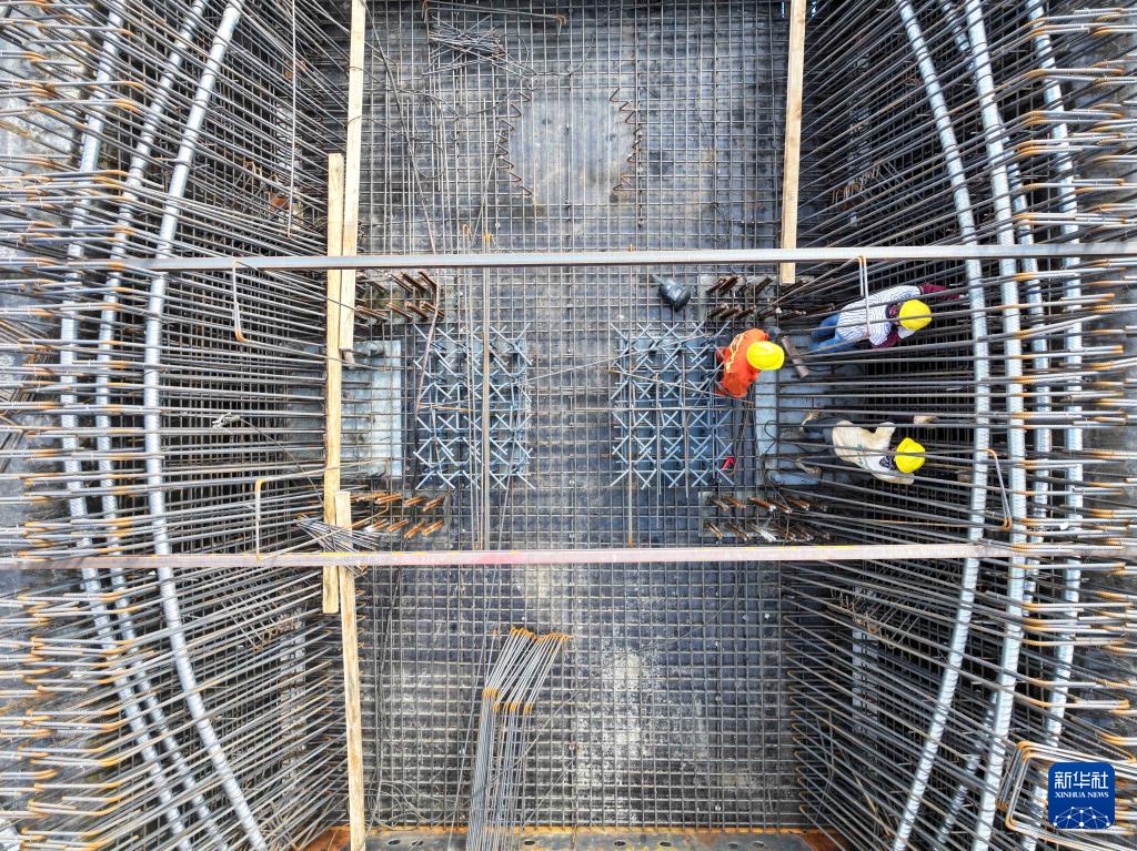 10月1日,中建三局三公司工人在位于湖北省武汉市武昌区一处项目工地进行施工作业(无人机照片)。