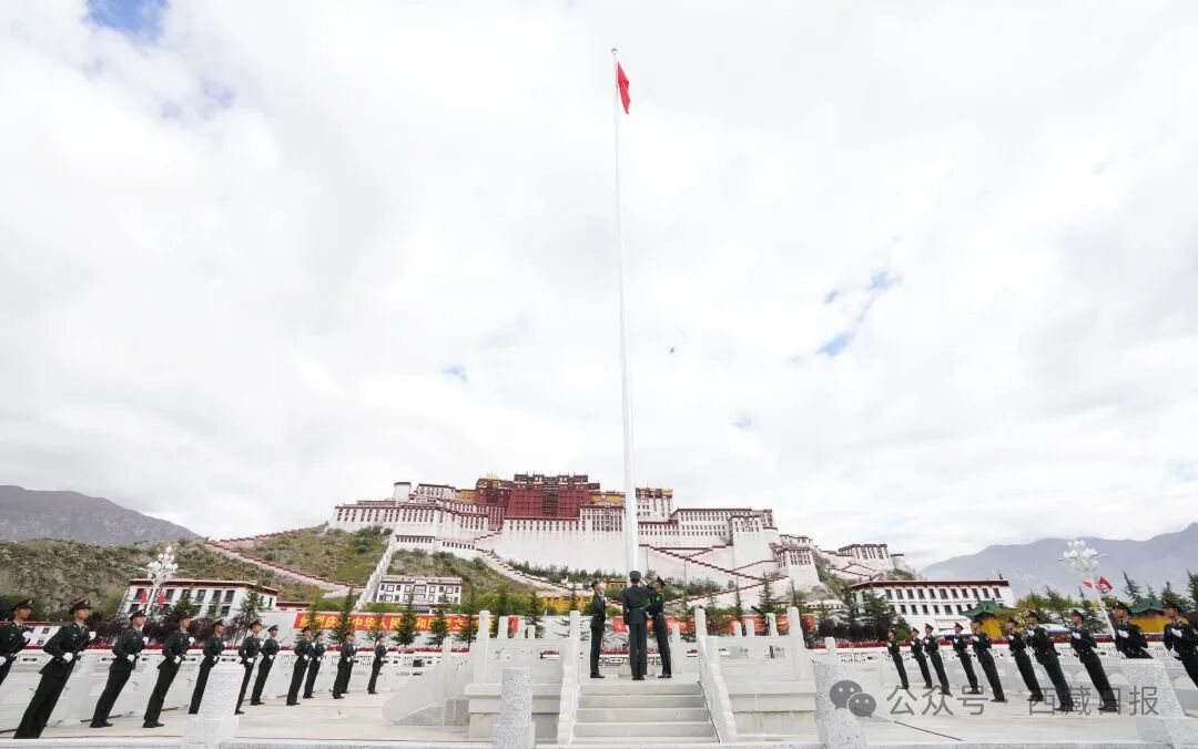 让我们一同走进这庄严时刻,看五星红旗在布达拉宫前、珠峰脚下、草原之上冉冉升起,听国歌在河谷间、古城里、村落中激昂回荡,感受西藏人民对祖国最深沉、最持久的爱!
