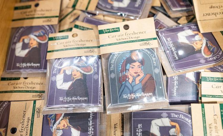 LHASA, Oct. 3 (Xinhua) -- Tashi Badan, 29, is the founder of Yakhore Design Company in southwest China's Xizang Autonomous Region. In recent years, he has led his team to develop a variety of Tibetan culture-themed products such as decorative items, art pieces and fridge magnets. Describing himself as "a bridge," Tashi Badan promotes products through short videos and live streaming, helping local artists reach a broader audience.