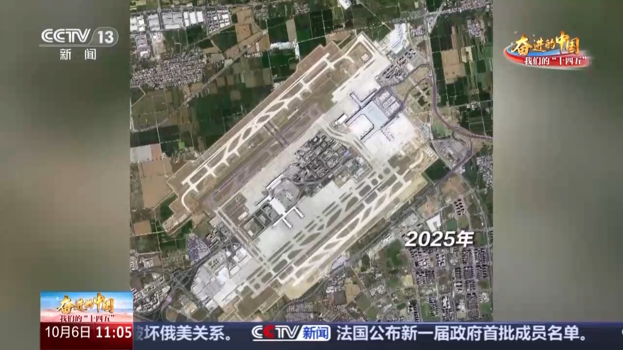 太空俯瞰,五年时光里,陕北高原上煤制乙二醇装置将“黑煤”转化为绿色化工产品;关中平原,国内首座T5航站楼投入运营。