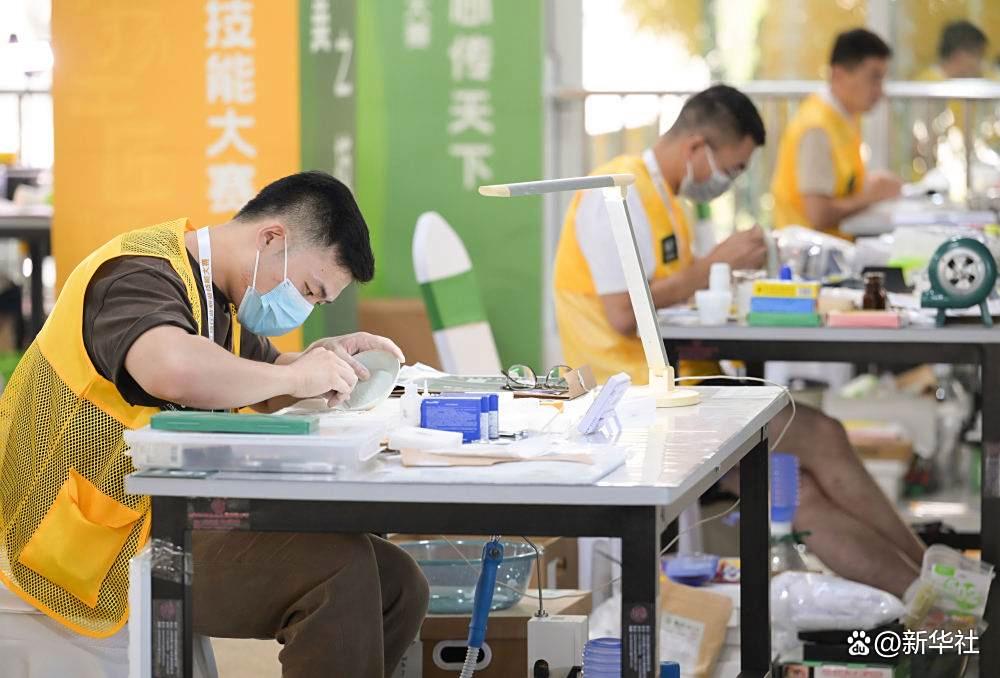 2025年7月4日,在四川泸州举行的第二届全国文物行业职业技能大赛上,选手参加陶瓷文物修复师赛区的比赛。本届大赛内容涵盖金属、陶瓷、纸张书画、木作、泥瓦作文物修复师及考古探掘工6个竞赛项目,通过以赛促学、以赛促训培养选拔文物保护修复高技能人才,弘扬工匠精神。