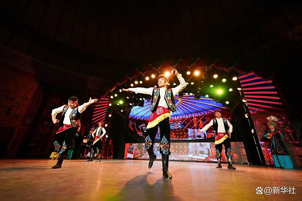 2025年5月1日,《新疆维吾尔自治区玛纳斯非物质文化遗产保护条例》正式实施,为保护这部列入联合国教科文组织非遗名录的柯尔克孜族英雄史诗提供了法规遵循。这是2025年4月22日,演员在位于新疆阿图什市的玛纳斯史诗大剧院为游客表演。