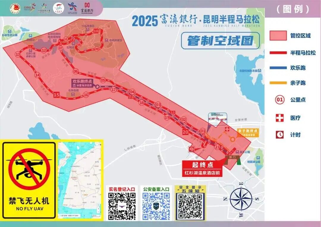 2025昆明半程马拉松将于10月12日在昆明市石林彝族自治县举行。为保障赛事安全、顺利进行,赛事期间将对部分道路分时、分段实施临时性交通管制措施。