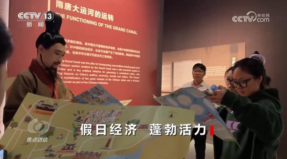 在河南洛阳的隋唐大运河文化博物馆,一位身穿古装的角色扮演者突然走向游客,简单自我介绍后,将特制的文博地图送到大家手中,并邀请众人一起漫步展厅,沉浸式探寻大运河的前世今生。