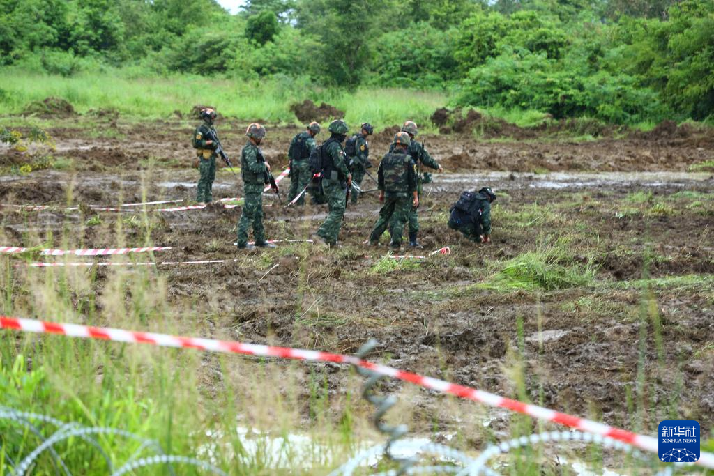 10月10日,在泰国沙缴府,泰军士兵在泰柬边境区域进行排雷作业。新华社记者 孙玮彤 摄