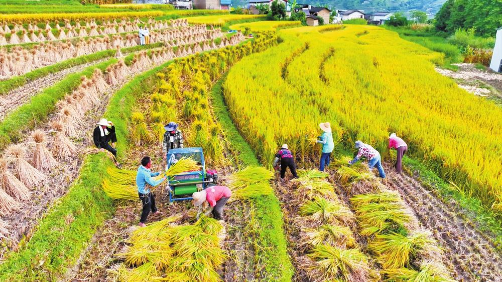 9月上旬,云龙县功果桥镇的万亩优质水稻迎来收获季,大理白族自治州进入秋粮丰收进行时。