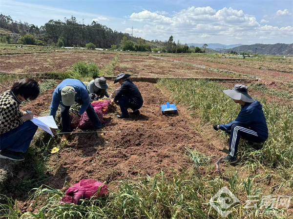 去年10月中旬组织种植的大蒜,按照深耕、疏松、增施有机肥、开墒、理沟的流程,合理密植巧轮作,科学施肥防病虫,确保大蒜高产高效群体形成。今年4月15日,由云南省作物学会组织并主持,邀请省内相关专家对云南省农业科学院粮食作物研究所等单位承担的云南省重大科技专项计划——粮食安全种业支撑专项“粮经协同千斤万元示范——一年多熟”项目在楚雄市吕合镇实施的“稻+蒜”模式百亩示范样板进行测产验收。专家组在察看现场、听取项目组介绍的基础上,按照农业农村部高产创建测产验收办法进行机收测产,在百亩方中随机选取好、中、差3块田,平均每块田量取667.33平方米进行实收,并测算独蒜、瓣蒜及其不同等级的比例。测产结果显示,在确保水稻种植面积和产量不下滑的前提条件下,粮经协同一年多熟“稻+蒜”模式中鲜蒜头加权平均亩量2121.79千克,按照企业现场收购价格计算,亩加权平均产值超18715.18元。
