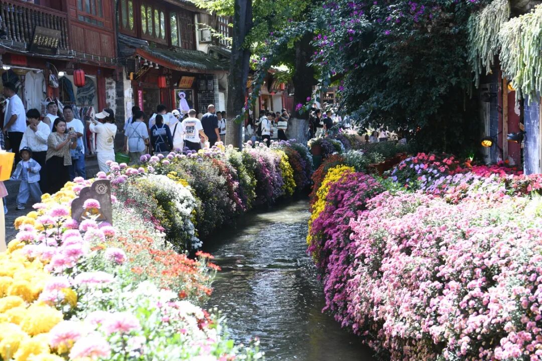 “寒露惊秋晚,朝看菊渐黄。”时下,正是丽江古城赏菊的好时节,各色菊花竞相绽放,菊香四溢沁人心脾,为游客献上了一场绚丽多彩的秋日花事。