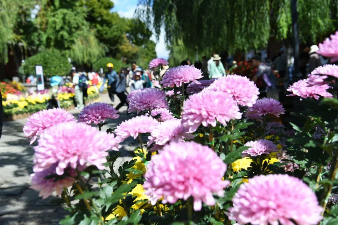 菊花绽放引游人。(丽江融媒记者 赵庆祖 摄)
