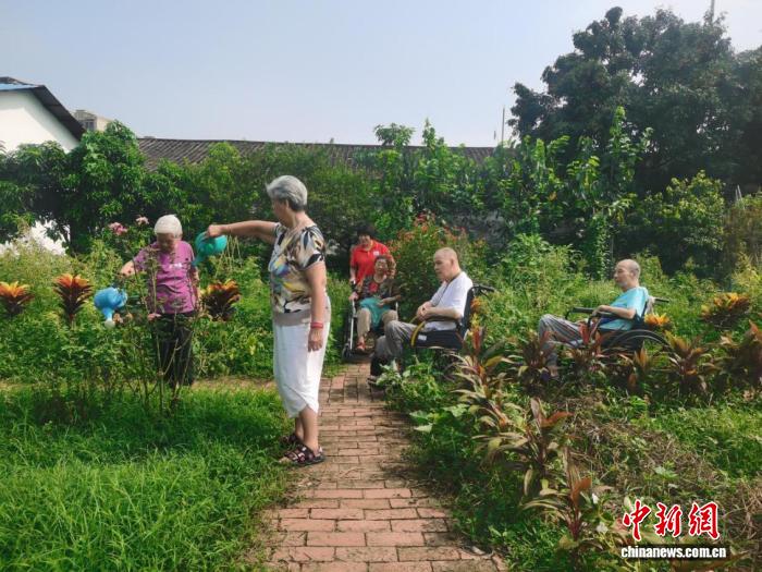 佛山一所养老社区环境优美,长者们在打理菜园。广东省民政厅 供图