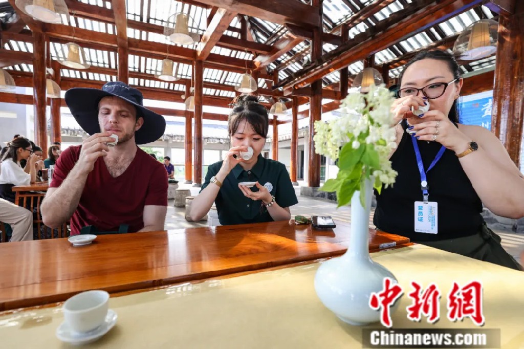 2024年7月,来自15个国家22名汉学青年学者来到贵州开展为期8天的研学活动。图为研习营营员在贵阳孔学堂体验茶艺。中新社记者 瞿宏伦 摄