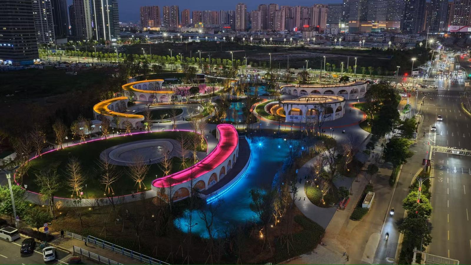 10月12日,昆明巫家坝首个新建城市公园正式对外开放,飞速成为了附近市民夜间休闲的“新宠”。