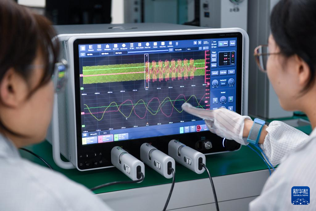 10月13日,在深圳市万里眼技术有限公司,实验室人员使用超高速示波器测试DDR5接口信号。(新华社记者 毛思倩摄)