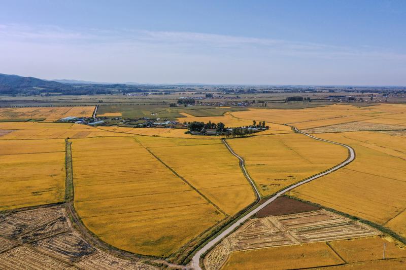 2025年9月23日在吉林省吉林市永吉县岔路河镇拍摄的农田(无人机照片)。新华社记者 张楠 摄