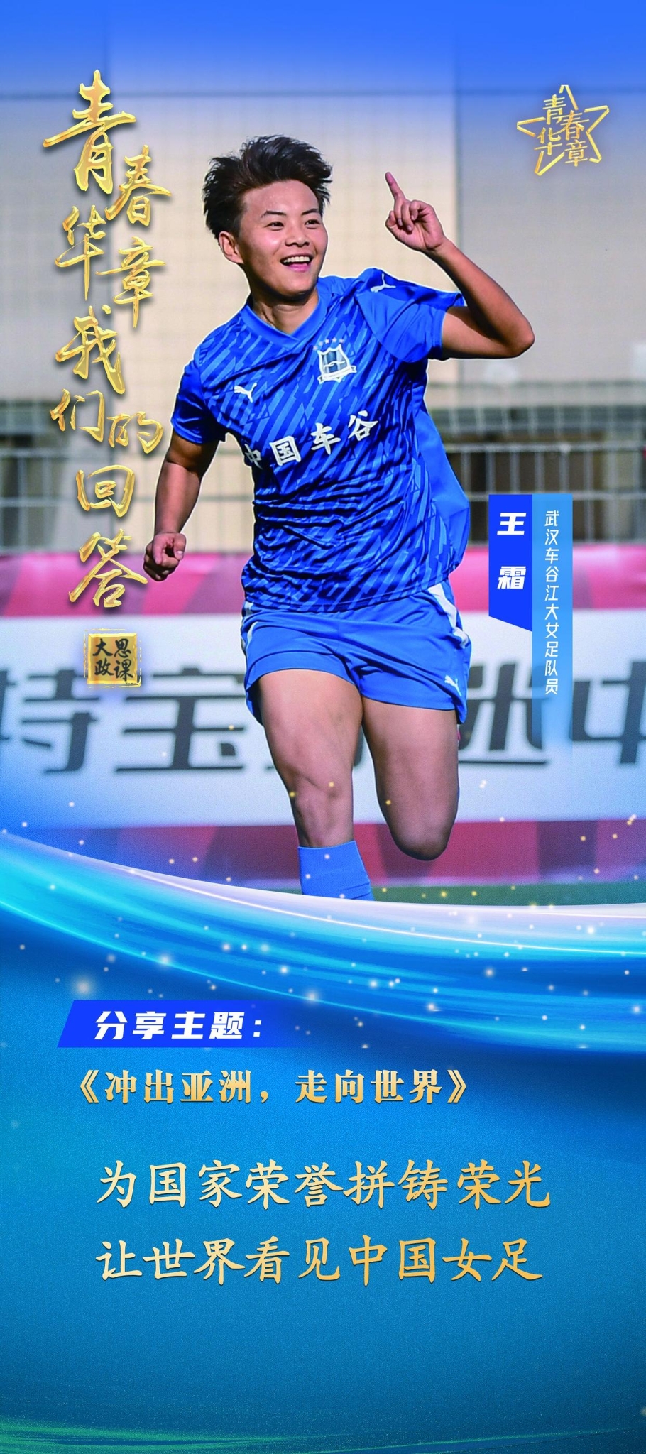 奋斗的故事引人入胜,榜样的力量激发共鸣,行走的青春别样精彩。青春的回答,从来不是纸上的空谈,而是脚下的丈量;思政的力量,也不是生硬的道理,而是与时代同频的共鸣。揆诸当下,武汉车谷江大女足二十载如一日携手共进、无悔拼搏、永不言弃,从连续5次夺得女超联赛冠军到实现国内赛场“全满贯”,从高校里的“学生军”到登顶亚洲的女足俱乐部,冲出亚洲、走向世界的背后是铿锵玫瑰青春风采的无声证言;赵兴炜教授和团队以科技自立自强勇攀高峰,让荆楚机器人成为中国智造的硬核力量,勾勒出青年学子创新奋进的青春足迹;谢先启院士把“爆破”从“粗放”淬炼成“精细”,从“技术”升华为“国之利器”,让青春力量与家国情怀同频共振……以热血赴山河、以青春担使命,当更多青年从“听故事的人”变成“讲故事的人”,以奋斗之姿讲述着中国青年的青春梦、中国梦、民族梦,在时代潮流中镌刻无悔足迹,这是青春的风采,是青春的誓言,更是青年的答案。