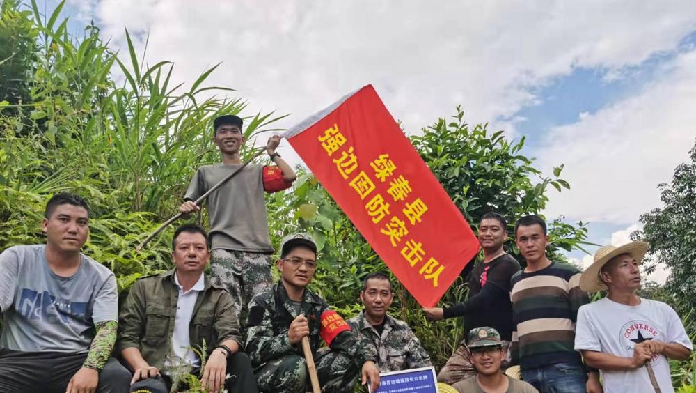 绿春县骑马坝乡强边固防突击队员巡边。