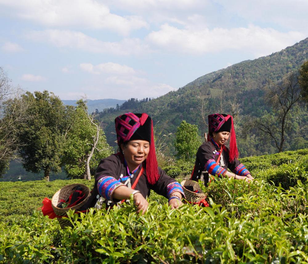 迷克茶山茶农采茶。 通讯员李建东/摄