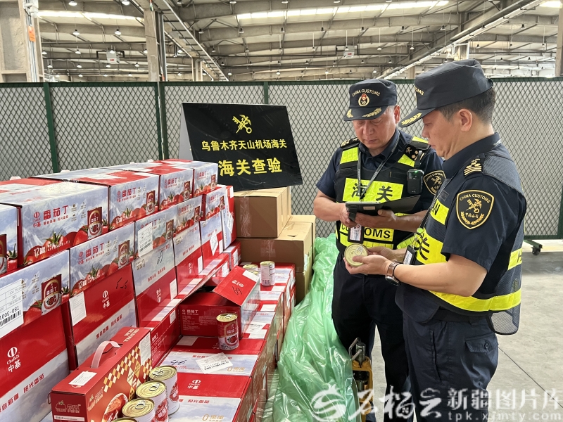 8月16日,乌鲁木齐天山机场海关关员监管出境货物。 赵蓓菁 摄