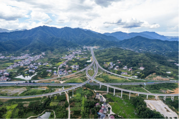 2025年8月19日拍摄的湖南炉慈高速慈利西互通枢纽(无人机照片)。炉慈高速是G59呼和浩特至北海高速公路的一部分,位于常德市石门县及张家界市慈利县境内。这条高速将长江三峡、壶瓶山、张家界等黄金旅游景点串珠成链,构建起湘鄂两省“两小时旅游圈”。新华社记者 陈思汗 摄