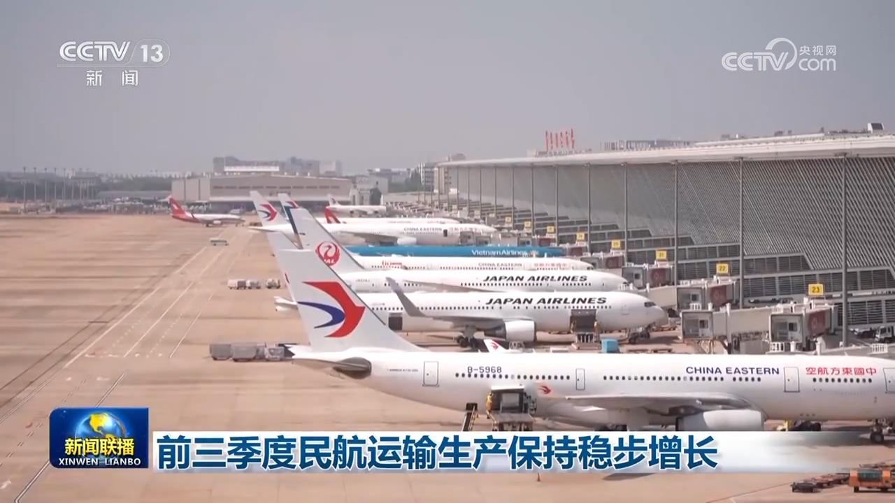 央视网消息(新闻联播):记者从民航局了解到,今年前三季度民航运输生产保持稳步增长。全行业完成运输总周转量、旅客运输量、货邮运输量同比分别增长10.3%、5.2%和14%。