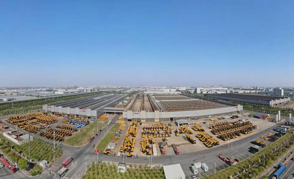 空中俯瞰上海三一重机股份有限公司外景(无人机全景照片,2025年4月15日摄)。新华社记者 方喆 摄