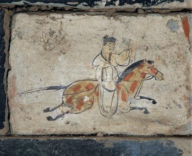 谈及嘉峪关魏晋墓的“不一般”,首推闻名遐迩的《驿使图》。这方长34厘米、宽17厘米的彩绘砖,自1972年从5号墓中重见天日,便揭开了一段被时光封存的古代邮驿密码。