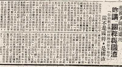 《艺术大师徐悲鸿 昨讲“国粹与国渣”》,原载《北平时报》,1948年5月9日