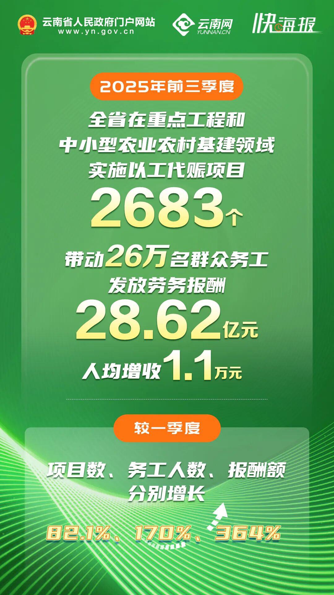 云南省发展和改革委员会坚决贯彻省委、省政府推进作风革命加强机关效能建设的部署,深入践行“三法三化”,将推广以工代赈作为转变作风、提升效能、保障民生的重要抓手。2025年前三季度,全省在重点工程和中小型农业农村基建领域实施以工代赈项目2683个,带动26万名群众务工,发放劳务报酬28.62亿元,人均增收1.1万元。项目数、务工人数、报酬额较一季度分别增长82.1%、170%、364%,政策效应持续放大。