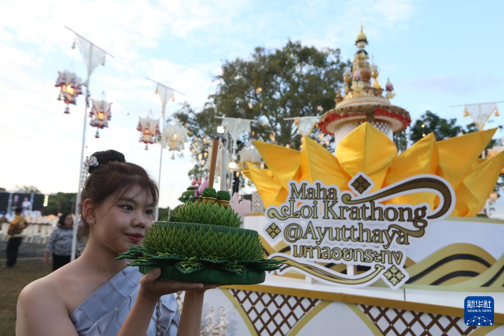 11月5日,民众在泰国大城府参加水灯节庆祝活动。