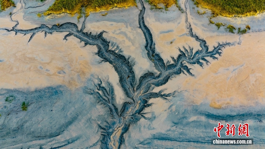 浙江嘉兴:江滩现“潮汐树”景观 宛如水墨画铺展大地