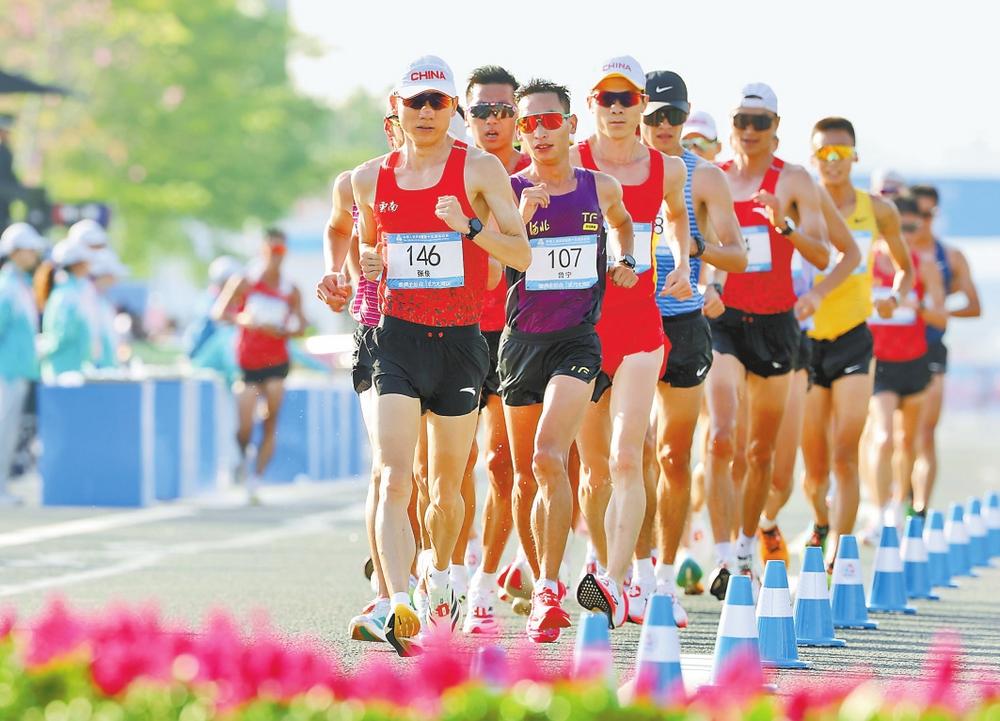 张俊(146号)在男子20公里竞走比赛中。 本报记者 周灿 摄