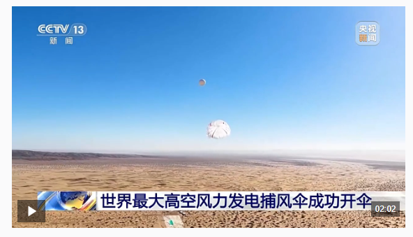 世界最大5000平方米高空风力发电捕风伞在内蒙古阿拉善左旗试验场成功开伞,完成全部预定试验内容并成功实现空中收伞,标志着我国高空风力发电技术在工程化应用方面迈出了坚实的一步。