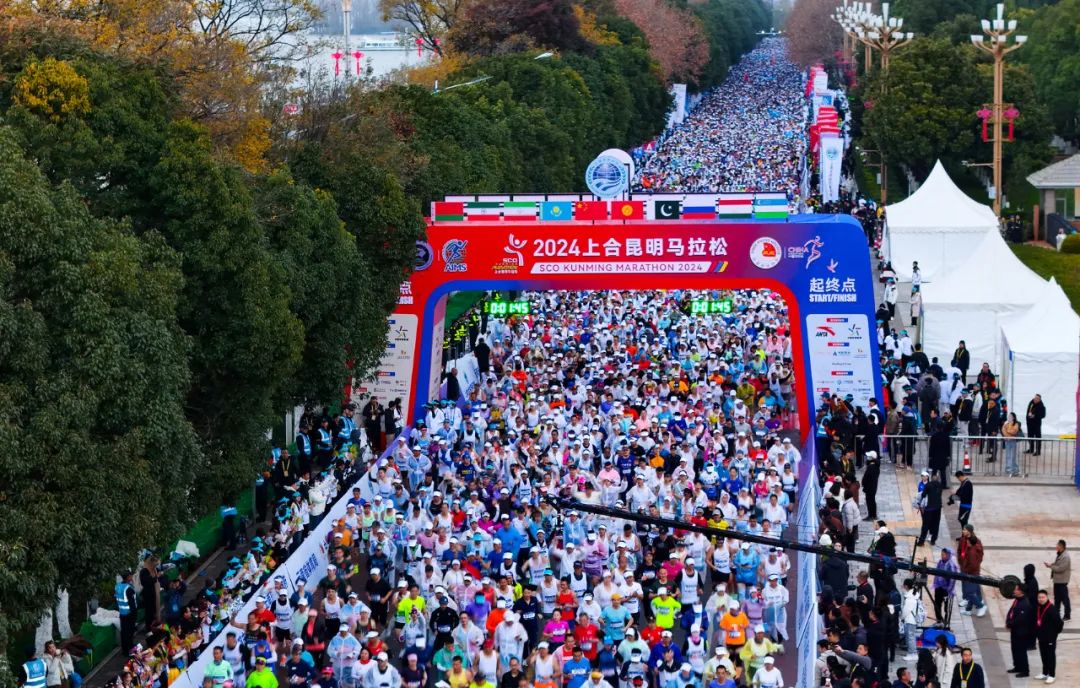2024上合昆明马拉松鸣枪开跑。高吴双/摄