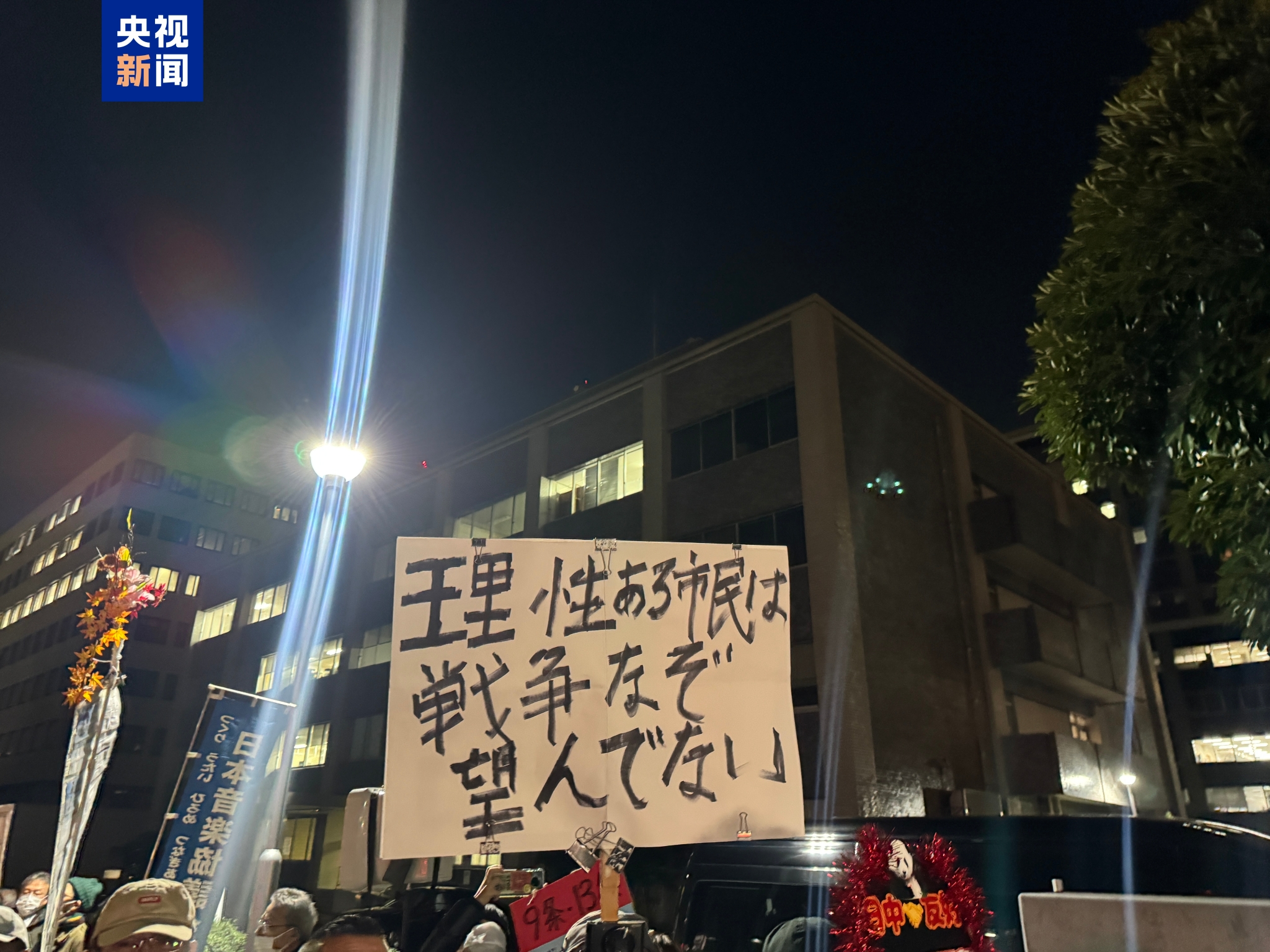 当地时间21日晚,数百名日本民众聚集在位于东京的首相官邸前,自发进行集会,要求日本首相高市早苗撤回涉台错误言论。