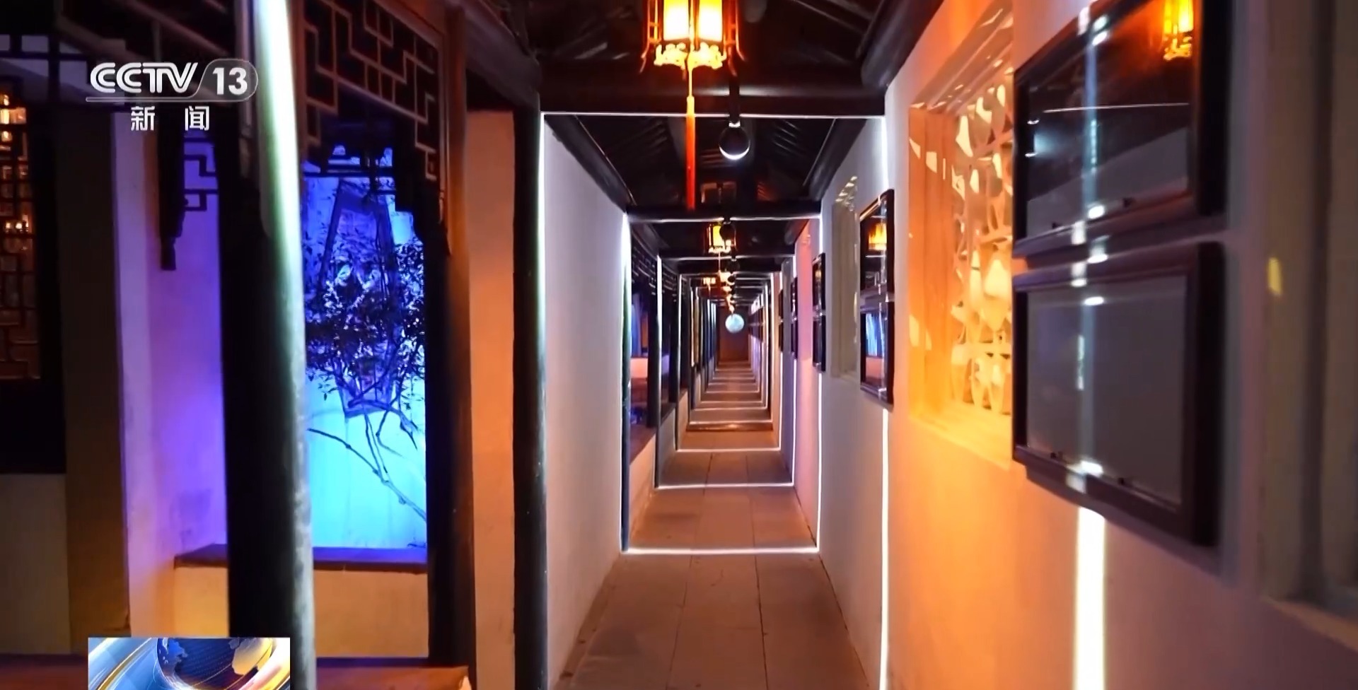 总台记者 秦睿迪:苏州园林的“图画感”,更藏在夜晚的光影流动里。在拙政园的夜游中,看自己的身影与文徵明手植紫藤投影在墙面同框,听昆曲《牡丹亭》的婉转曲调传来,“人在画中游”的意境已然不言而喻。