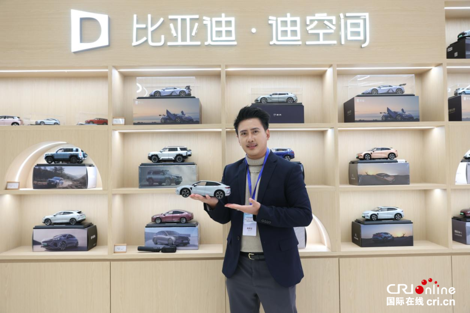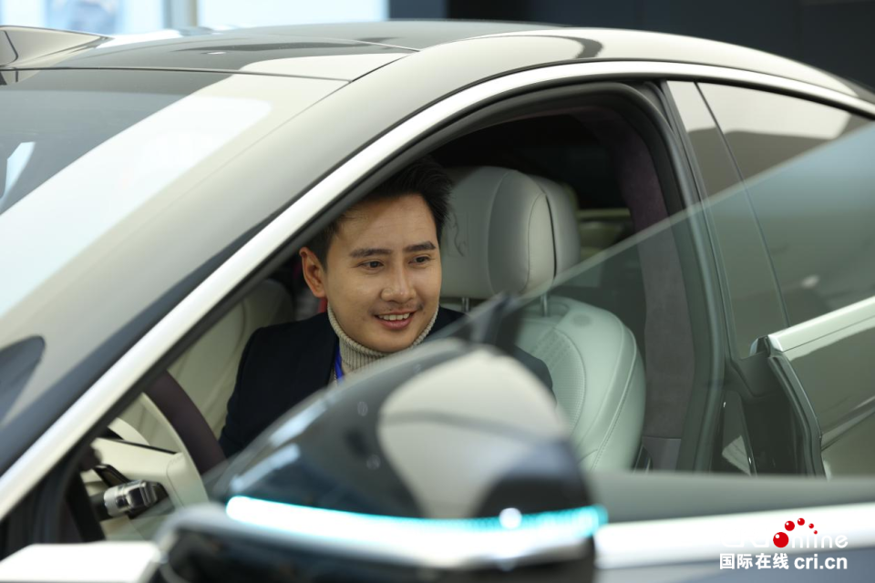 11月23日,在迪空间·新能源汽车科普馆,王伟看到了老挝街头日益增多的中国新能源汽车,更觉亲切。