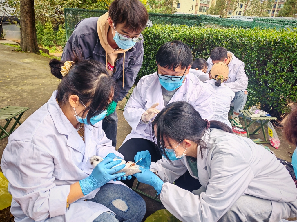 近日,昆明市濒危动植物收容拯救中心联合云南农业大学对2025年来昆越冬红嘴鸥开展一阶段环志调查及疫源疫病监测主动预警专项工作,旨在系统掌握越冬红嘴鸥等水鸟迁徙动态、种群健康状况及潜在疫病传播风险。工作团队通过安全捕捉、形态测量、环志标识等系列科学操作,对60只红嘴鸥进行了详细记录,并采集了血液、咽拭子、肛拭子等样本用于病原微生物检测分析。