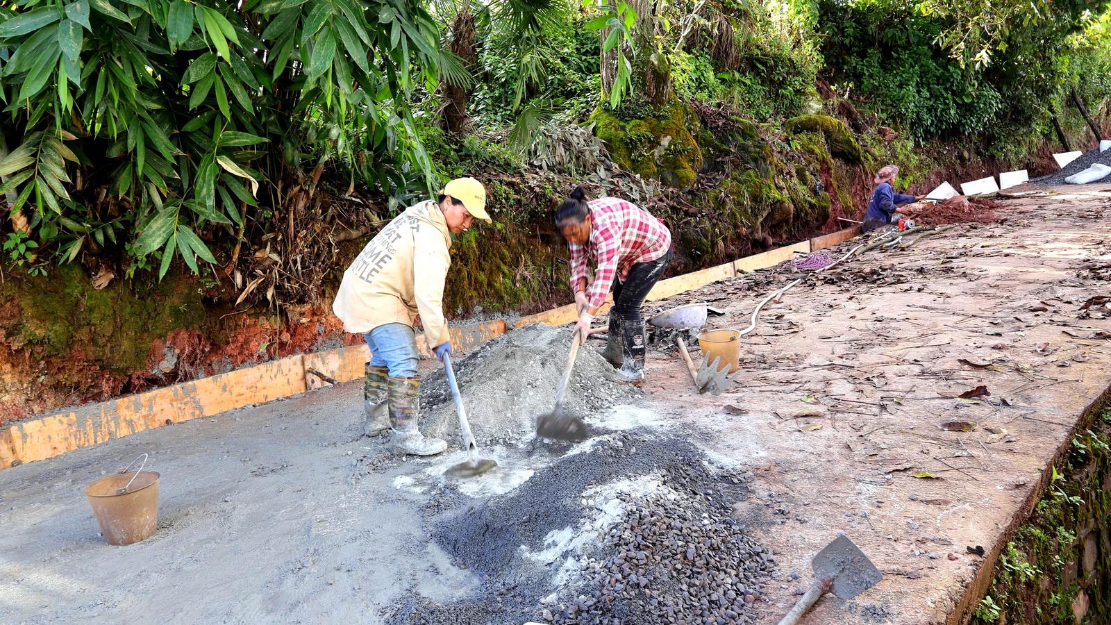 宁河村三道箐小组组长祝秀美表示:“路修好后,环境卫生好打扫,农资运输也方便了,今天全小组能劳动的全都来了,大家一起干。”