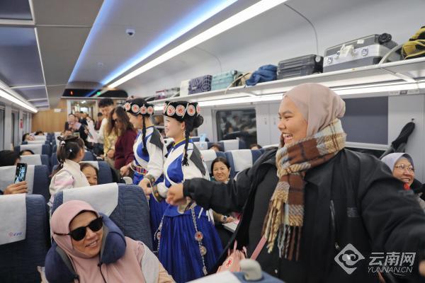 丽香铁路开通以来,国铁昆明局紧紧围绕“美丽云岭天路 民族团结纽带”重要定位,在香格里拉、丽江等车站打造“玉龙·金花”“香巴拉·金花”等服务品牌,车站和列车上推出“汉语+民族语+英语”服务,列车上采用藏族独有的格桑花图案定制列车台布、靠枕套等,营造良好、舒适的乘车环境。打造“扎西食集”主题餐吧,推出“一路茶香”可甜可咸特色酥油茶,提供松茸、牦牛奶酪、藏式糌粑能量棒、藏香干巴牛肉、牦牛肉馅饼等高原美食,创新提供防烫提示贴、暖心加热桶和热藏盒饭等个性化服务。此外,丽江、香格里拉等车站还积极对接当地交通部门,开通车站到景区直达客车,不断优化和完善车站周边交通接驳,为旅客提供便捷换乘。