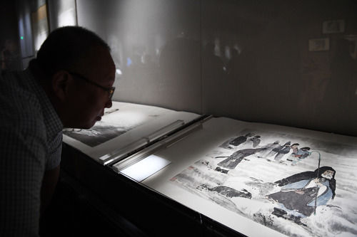 观众在傅抱石抗战时期绘画作品展上观赏作品《苏武牧羊图》。新华社资料片