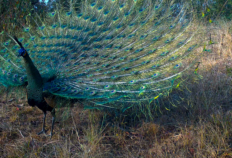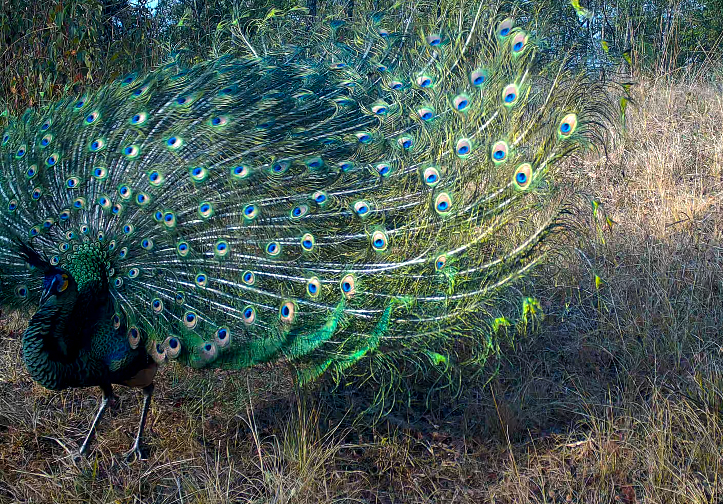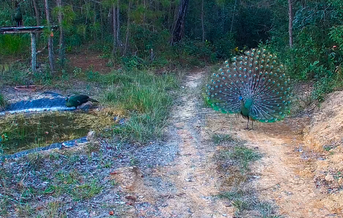 近日,云南省临沧市镇康南捧河省级自然保护区传出喜讯:保护区内国家一级重点保护野生动物绿孔雀开屏求偶的珍贵画面再次被红外相机捕捉到,这是镇康南捧河省级自然保护区自2021年以来第七次监测记录到绿孔雀开屏求偶行为,标志着这一濒危物种的保护工作取得阶段性成效。
