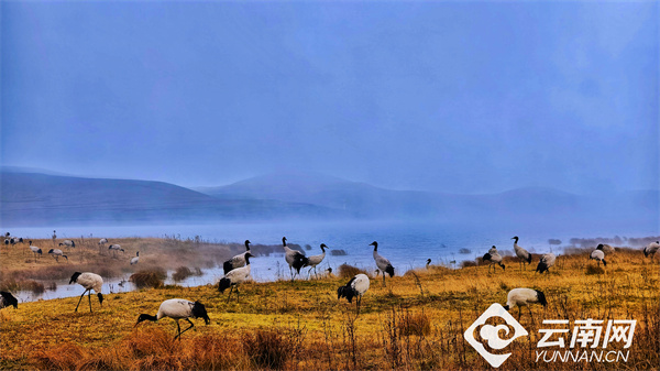连日来,云南大山包黑颈鹤国家级自然保护区迎来越冬黑颈鹤迁徙高峰。截至11月26日上午10时,飞抵大山包越冬的黑颈鹤达到2103只,刷新了历史同期观测数据。