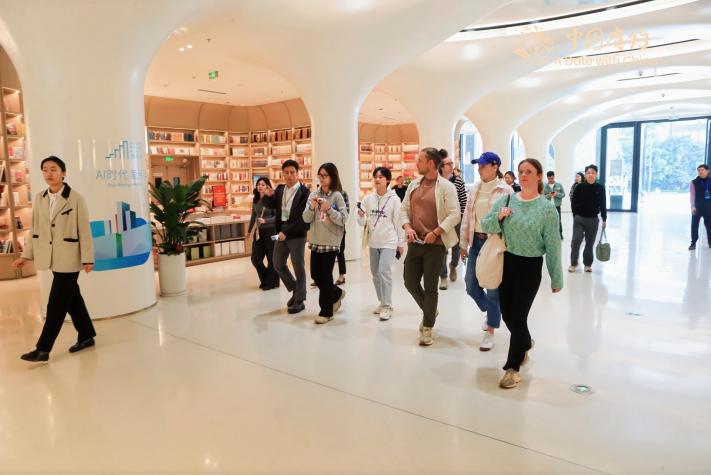 28日上午,冬日和煦的阳光轻柔地倾洒在深圳海岸线上。2025“中国有约”国际媒体采访团走进了今年9月刚刚开业的深圳书城湾区之眼(别名“湾区书城”),来自不同国家的访客们瞬间被这座独具特色的文化空间颠覆了对传统书店或图书馆的固有认知。